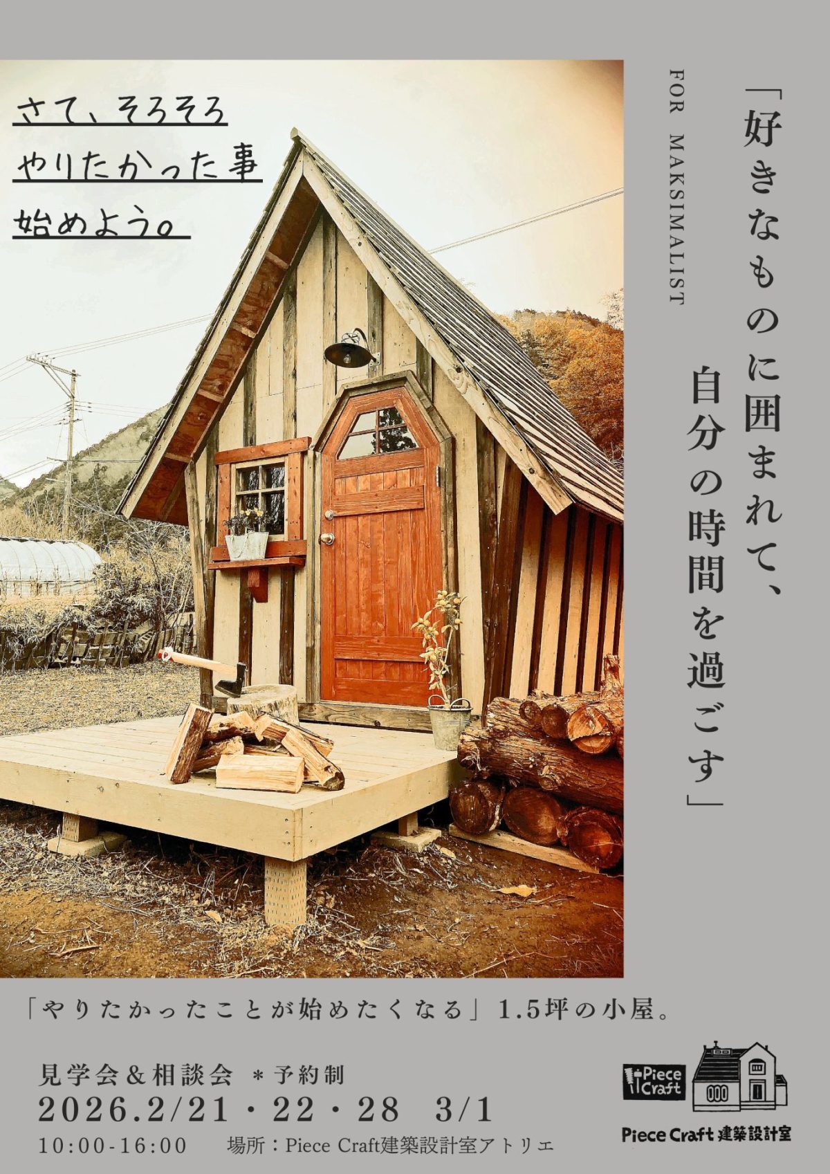 2/21,22,28 .3/1「1.5坪の小屋」見学会&相談会(*受付中)